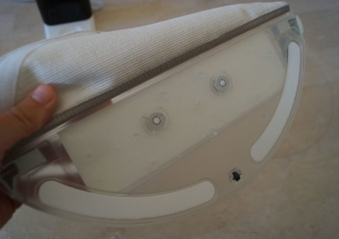 Et enfin un support étanche à fixer à la base et qui permet au robot de revenir se recharger en mode serpillière.