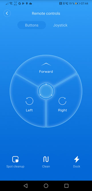 Xiaomi a fait le choix de boutons physiques. Je les trouve bien plus pratiques que les boutons tactiles pas toujours très réactifs. Le bouton de gauche est celui du retour à la base, celui de droite lance le mode Spot et enfin au milieu, il s’agit du bouton pause.
