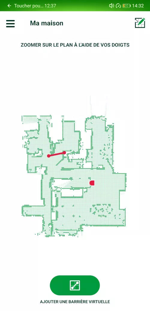 – J’ai une maison à étage, donc dommage de ne pas avoir 2 plans de la maison (obligée de faire l’étage en local. Du coup, il ne peut pas revenir à sa base tout seul)