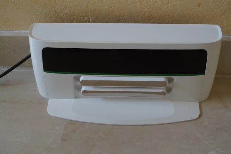 La base de rechargement est identique au Kobold VR200. Elle mesure 31 cm de large. Elle est esthétiquement dans le même esprit que le robot. Je la trouve plutôt réussie.