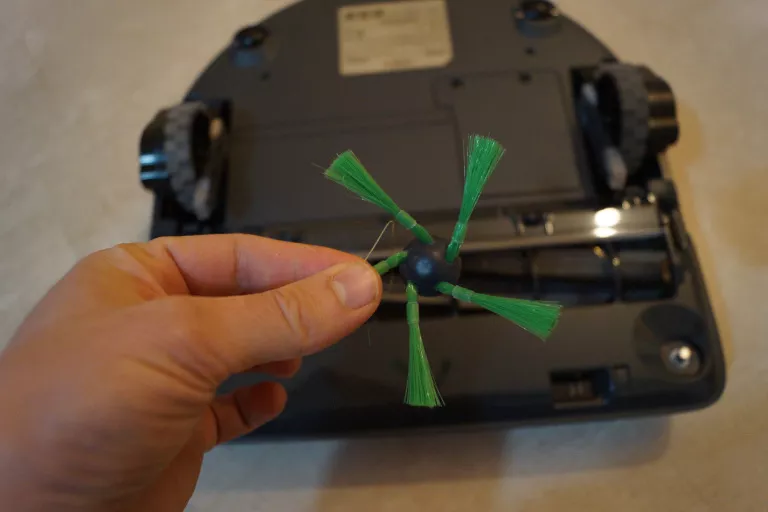 Des cheveux et poils s’enroulent autour de la brosse nécessitant un entretien occasionnel contrairement à la brosse entièrement en plastique qui n’est malheureusement pas disponible avec le Kobold contrairement au Neato Botvac. Le robot perd donc quelques points sur ce critère d’évaluation. Voici la brosse 100% plastique :