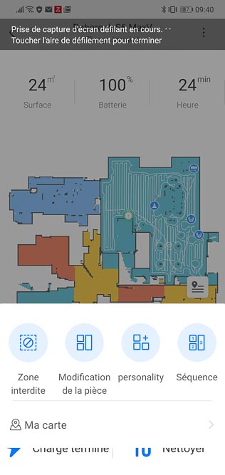 Je n’ai rencontré aucune difficulté pour installer l’application sur mon smartphone Huawei grâce au WiFi smart connect. Je le précise car ce n’est pas toujours le cas en fonction des aspirateurs robots. Je suis parfois obligé de me rabattre sur un Iphone.